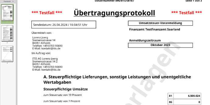 Direct transmission to tax offices via Elster