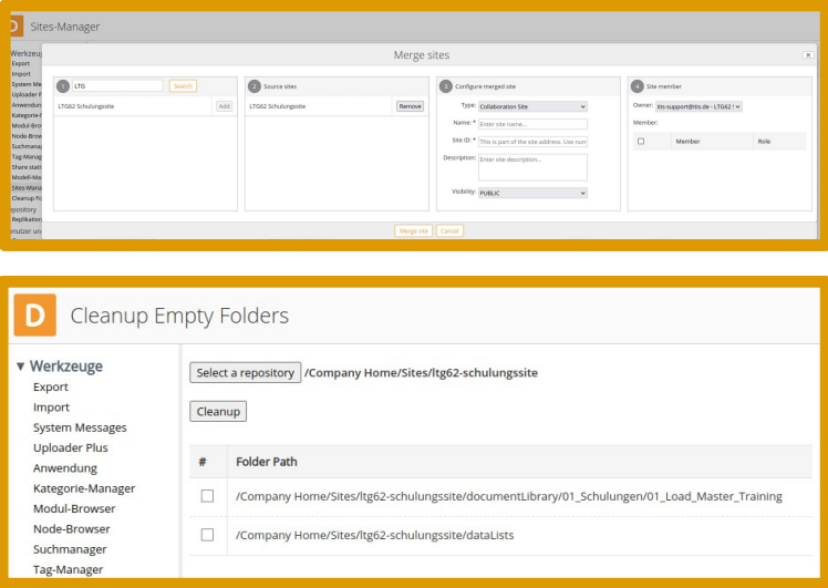 Merge sites or set up automatic cleanup for your folders.