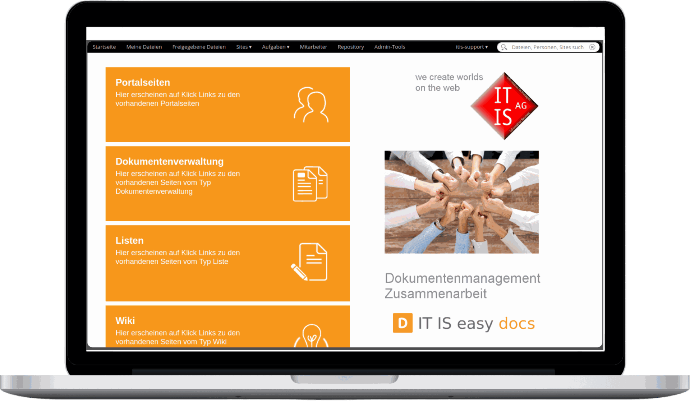 ITISeasy.docs - your excellent document management system (DMS),  complemented by workflows, portal functions, a wiki and media comp onents (ECM).​