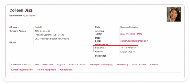 Text fields are the most variable fields and can be filled with both numbers and letters. Already shown several times the additional field of the fax number is a text field.